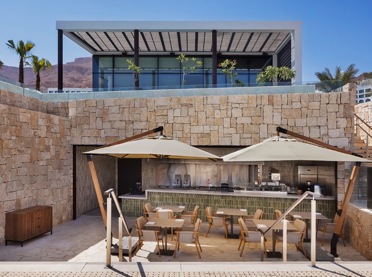 Every elegantly presented serving is a delight for the eye and the palate. The restaurant’s unique mood blends easy-going charm with panoramic views of the Dead Sea and the Red Mountains of Edom, particularly stunning at sunset.
